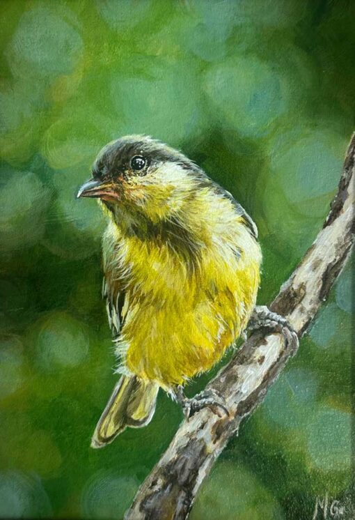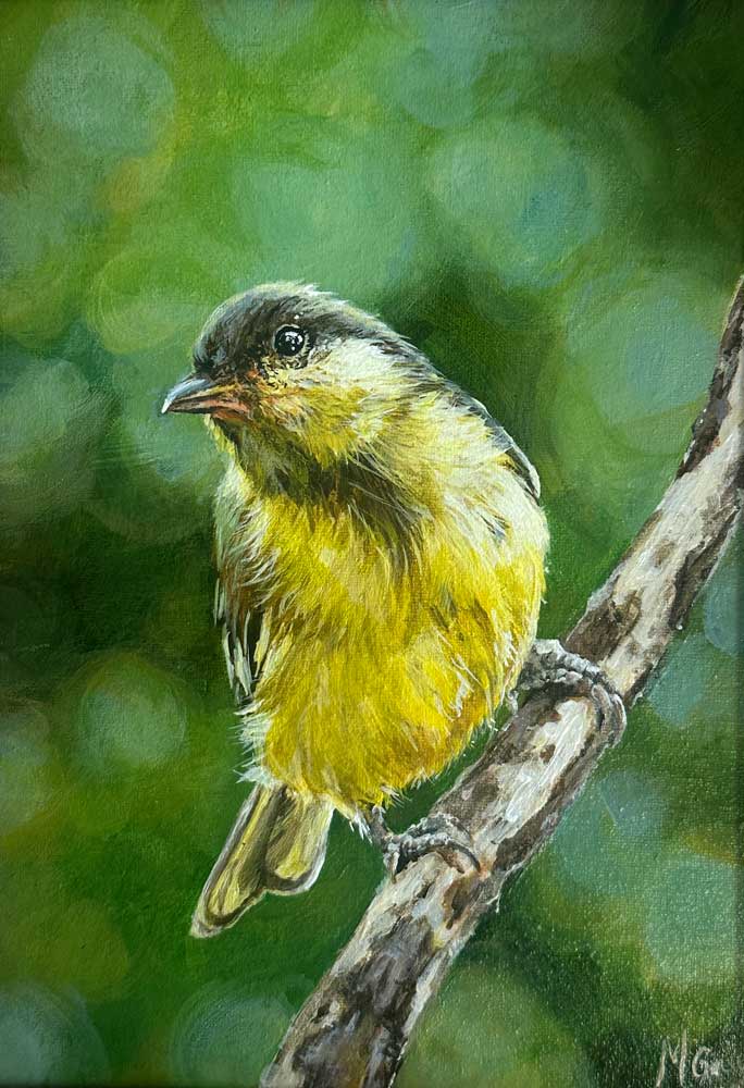 I really enjoyed painting this little yellow bird. He just seemed a curious and