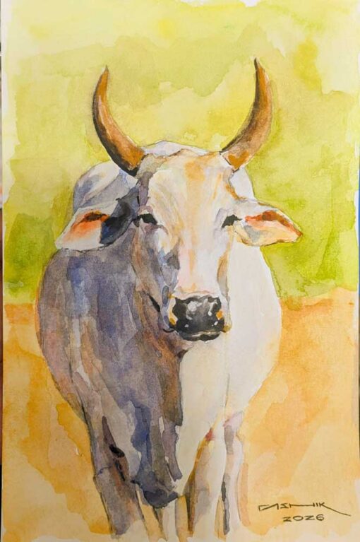 Indian Cow in Watercolor by Ashik Nainar