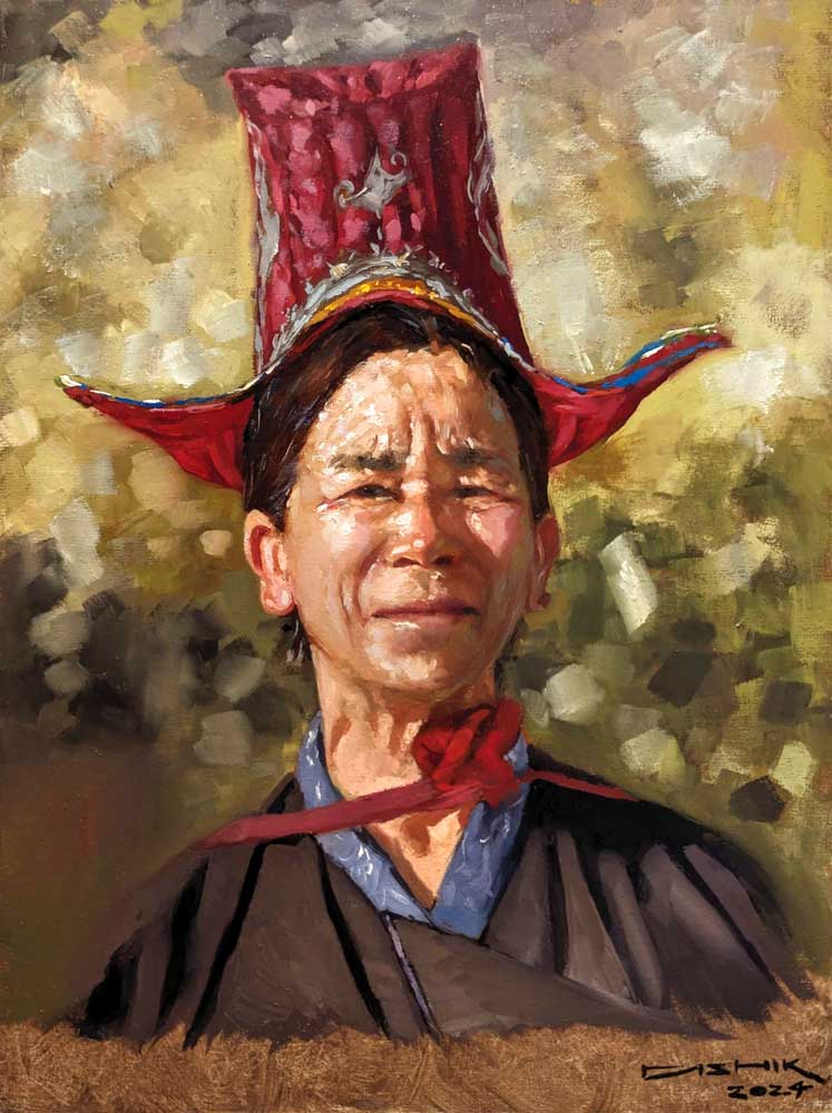 The ornate hat, sun-kissed cheeks and the serene expression motivated me to paint this beautiful Tribal Lady.